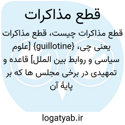 {guillotine} [علوم سیاسی و روابط بین الملل] قاعده و تمهیدی در برخی مجلس ها که بر پایۀ آن با به پایان رسیدن زمان مقرر، مباحثه دربارۀ موضوعی خاص خاتمه می یابد