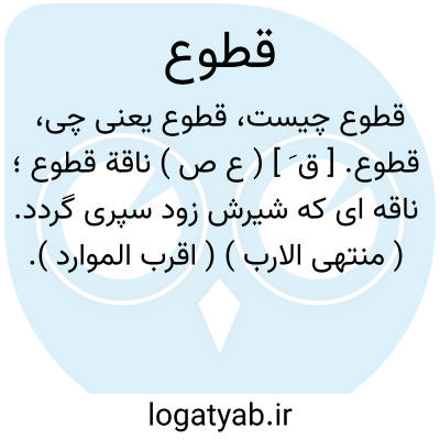 قطوع. [ ق َ ] ( ع ص ) ناقة قطوع؛ ناقه ای که شیرش زود سپری گردد. ( منتهی الارب ) ( اقرب الموارد ). || بُرنده: