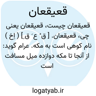 قعیقعان. [ ق ُ ع َ ق ِ] ( اِخ ) نام کوهی است به مکه. عرام گوید: از آنجا تا مکه دوازده میل مسافت است و در راه جرف ( حوف ) به سوی یمن قرار دارد. ( معجم البلدان ). کوهی است در مکه ( اقرب الموارد ) ( منتهی الارب )، که رو به سوی کوه ابوقبیس دارد و بدین نام خوانده شده زیرا که طائفه جرهم اسلحه خود را در آن مینهادند و بانگ اسلحه در آن بلندمیشد، و یا چون این طایفه یا طایفه قطوراء در این مکان مصاف دادند بانگ اسلحه برخاست. ( منتهی الارب ).