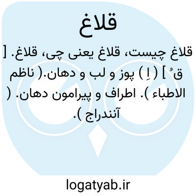 قلاغ. [ ق ُ ] ( اِ ) پوز و لب و دهان.( ناظم الاطباء ). اطراف و پیرامون دهان. ( آنندراج ).