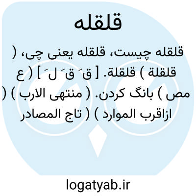 ( قلقلة ) قلقلة. [ ق َ ق َ ل َ ] ( ع مص ) بانگ کردن. ( منتهی الارب ) ( ازاقرب الموارد ) ( تاج المصادر بیهقی ). || جنبانیدن. || زدن. ( منتهی الارب ) ( اقرب الموارد ): قلقل فی الارض؛ بر زمین زد. ( منتهی الارب ). || ( اِصوت ) بانگ قفل و کلید. ( مهذب الاسماء ).