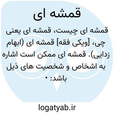 [ویکی فقه] قمشه ای (ابهام زدایی). قمشه ای ممکن است اشاره به اشخاص و شخصیت های ذیل باشد: • آقاکوچک قمشه ای، دانشمندی عارف و از اهالی قمیشه اصفهان در قرن سیزده هجری• محمدحسین قمشه ای، از علمای عارف و مجاهد ایران در قرن سیزدهم و چهاردهم هجری• محمدرضا قمشه ای، از حکمای متأله و عرفای بزرگ شیعه در قرن سیزدهم و چهاردهم هجری قمری• محمدعلی قمشه ای، نویسنده معاصر کتاب البراهین الواضحات دراسات فی القضاء را در مورد قضا• مهدی الهی قمشه ای، از عرفا و اساتید بزرگ عرفان در عصر حاضر