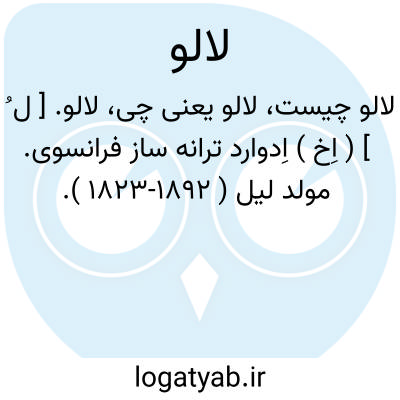 لالو. [ ل ُ ] ( اِخ ) اِدوارد ترانه ساز فرانسوی. مولد لیل ( 1892-1823 ).