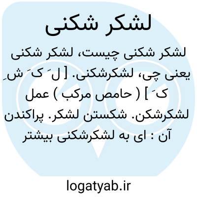 لشکرشکنی. [ ل َ ک َ ش ِ ک َ ] ( حامص مرکب ) عمل لشکرشکن. شکستن لشکر. پراکندن آن: