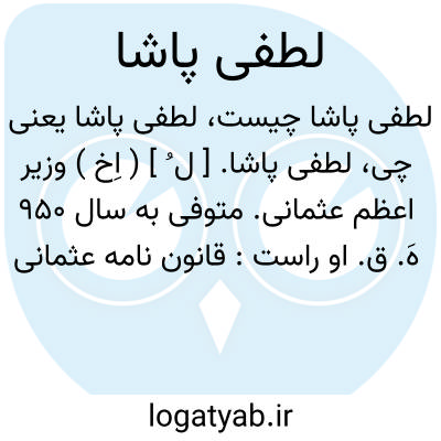 وزیر اعظم دولت عثمانی ( ف. ۹۵٠ه. ). وی در زمان سلطان سلیمان قانونی بسال ۹۴۴ ه. بمقام صدراعظمی رسید و سه سال زمام امور کشور را در دست داشت. لطفی پاشا کتابهایی بترکی و عربی نگاشته که از آن جمله اند: [ تاریخ عثمانی ] [ آصف نامه ] و [ تحفه الطالبین ].