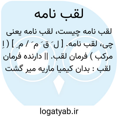 ( اسم ) ۱- فرمانی از طرف شاه یا امیر حاکی از لقبی که به کسی دهد. ۲- حامل و دارند. لقب نامه: بدان کیمیا ماریه میر گشت لقب نام. علم اکسیر گشت. ( نظامی لغ. )