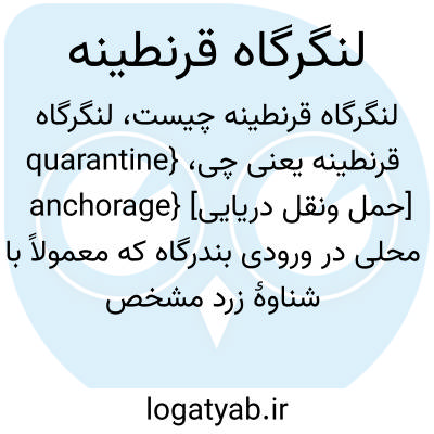 {quarantine anchorage} [حمل ونقل دریایی] محلی در ورودی بندرگاه که معمولاً با شناوۀ زرد مشخص می شود و کشتی ها در آنجا لنگر می اندازند تا مقررات قرنطینه در مورد آنها اعمال شود