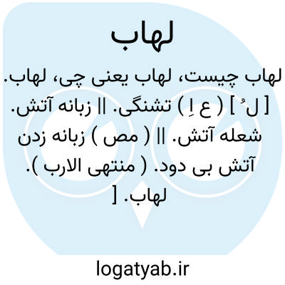 لهاب. [ ل ُ ] ( ع اِ ) تشنگی. || زبانه آتش. شعله آتش. || ( مص ) زبانه زدن آتش بی دود. ( منتهی الارب ).