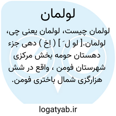 لولمان.[ لو ل َ ] ( اِخ ) دهی جزء دهستان حومه بخش مرکزی شهرستان فومن، واقع در شش هزارگزی شمال باختری فومن. جلگه، معتدل، مرطوب و مالاریائی. دارای 435 تن سکنه. آب آن از رود ماسوله. محصول آنجا برنج، توتون سیگار و ابریشم. شغل اهالی زراعت است و از فومن و صومعه سرا اتومبیل میرود. چهل باب دکان دارد و روزهای شنبه آنجابازار عمومی است. ( از فرهنگ جغرافیائی ایران ج 2 ).