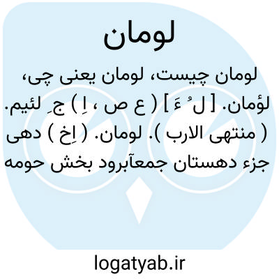 لومان. ( اِخ ) دهی جزء دهستان جمعآبرود بخش حومه شهرستان دماوندواقع در هزارگزی جنوب خاوری دماوند و ده هزارگزی جنوب راه شوسه طهران به مازندران. کوهستانی و سردسیر. دارای 500 تن سکنه. آب آن از قنات و چشمه سار. محصول آنجا غلات و قیسی. شغل اهالی زراعت و راه آن مالرو است و معدن گچ دارد. ( از فرهنگ جغرافیائی ایران ج 1 ).