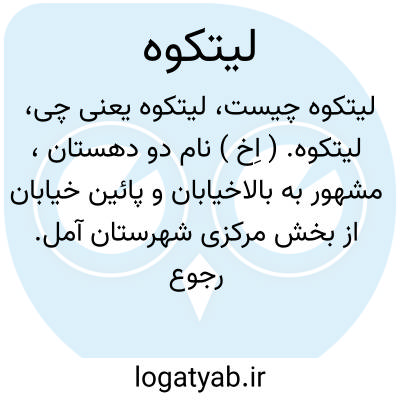 لیتکوه. ( اِخ ) نام دو دهستان، مشهور به بالاخیابان و پائین خیابان از بخش مرکزی شهرستان آمل. رجوع به بالاخیابان و پایین خیابان در فرهنگ جغرافیائی ایران ج 3 شود.