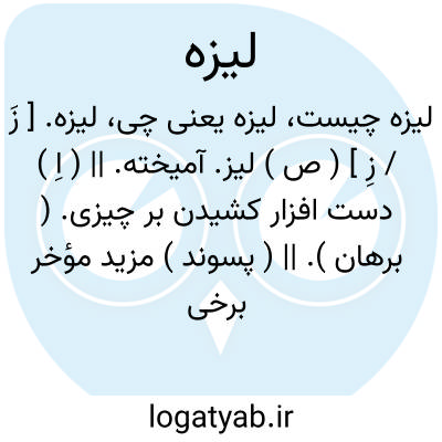 لیزه. [ زَ / زِ ] ( ص ) لیز. آمیخته. || ( اِ ) دست افزار کشیدن بر چیزی. ( برهان ). || ( پسوند ) مزید مؤخر برخی کلمات، چون: کفچلیزه.