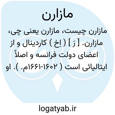 مازارن. [ رَ ] ( اِخ ) کاردینال و از اعضای دولت فرانسه و اصلاً ایتالیائی است ( 1602-1661م. ). او سیاستمداری ملایم بود و از تصادم میان فرانسه و اسپانی جلوگیری کرد. ریشیلو او را به جانشینی خود معین کرد. درزمان لوئی سیزدهم به نخست وزیری رسید و در سال 1639در زمره مردم عادی درآمد، ولی در دوران پادشاهی لوئی چهاردهم مجدداً وارد خدمت شد و مورد حمایت ملکه «آن » واقع شد و توانست جنگ «سی ساله » را پایان دهد ( 1648 ). از سیاستمداران معروف فرانسه بود ولی به علت آزمندی انتقادهای فراوانی از او شده است. ( از لاروس ).