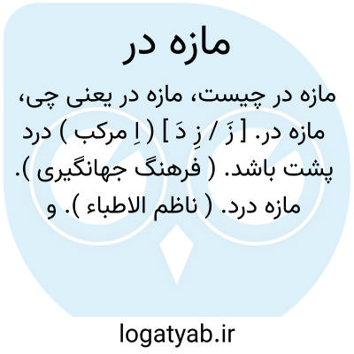 مازه در. [ زَ / زِ دَ ] ( اِ مرکب ) درد پشت باشد. ( فرهنگ جهانگیری ). مازه درد. ( ناظم الاطباء ). و رجوع به مازه درد شود.