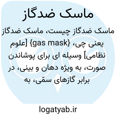 {gas mask} [علوم نظامی] وسیله ای برای پوشاندن صورت، به ویژه دهان و بینی، در برابر گازهای سمّی، به ویژه در هنگام جنگ