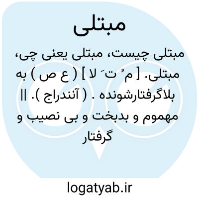 مبتلی. [ م ُ ت َ لا ] ( ع ص ) به بلاگرفتارشونده. ( آنندراج ). || مهموم و بدبخت و بی نصیب و گرفتار مصیبت و تنگدستی. ( ناظم الاطباء ). گرفتار بلا. گرفتار. ( فرهنگ فارسی معین ): من بعد از مدتی که به بلای جوع و عذاب گرسنگی مبتلی بوده ام. ( انوار سهیلی ).