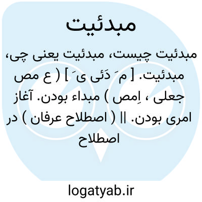 مبدئیت. [ م َ دَئی ی َ ] ( ع مص جعلی، اِمص ) مبداء بودن. آغاز امری بودن. || ( اصطلاح عرفان ) در اصطلاح عرفا، اضافه محض است به اعتبار تقدم ذات احدیت بر حضرت واحدیت که منشاء اسماء و صفات و مبداءالمبادی است. ( فرهنگ علوم عقلی ) ( فرهنگ مصطلحات عرفاء سیدجعفر سجادی ).
