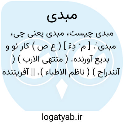 مبدی ٔ. [ م ُ دِءْ ] ( ع ص ) کار نو و بدیع آورنده. ( منتهی الارب ) ( آنندراج ) ( ناظم الاطباء ). || آفریننده نخست بار. ( السامی ) ( مهذب الاسماء ). آفریننده. ( دهار ).