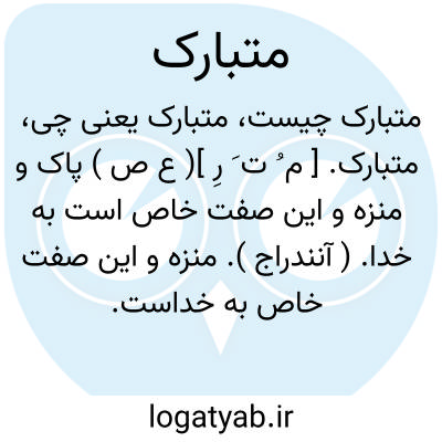 متبارک. [ م ُ ت َ رِ ]( ع ص ) پاک و منزه و این صفت خاص است به خدا. ( آنندراج ). منزه و این صفت خاص به خداست. ( ناظم الاطباء ). || مرتفع. ( ذیل اقرب الموارد ). || مقدس و پارسا و محترم. || مشهور و نامدار. || خجسته و سعادتمند. ( ناظم الاطباء ).