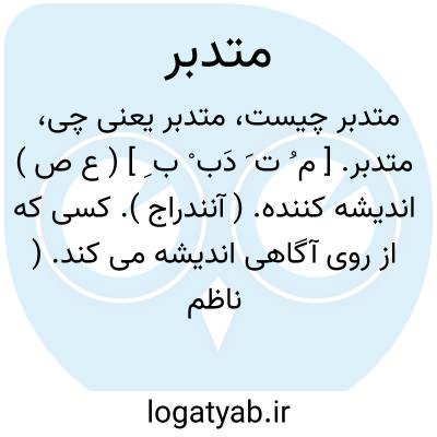 متدبر. [ م ُ ت َ دَب ْ ب ِ ] ( ع ص ) اندیشه کننده. ( آنندراج ). کسی که از روی آگاهی اندیشه می کند. ( ناظم الاطباء ). || حقیقت چیزی دریابنده. ( آنندراج ). آن که درست دریافت می کند. ( ناظم الاطباء ). || آن که به خوبی می آراید و ترتیب می دهد. ( ناظم الاطباء ) ( از فرهنگ جانسون ). و رجوع به تدبر شود.