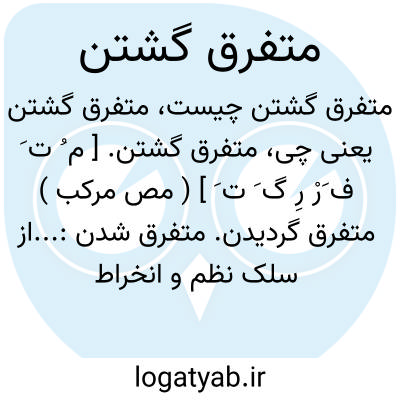 متفرق گشتن. [ م ُ ت َ ف َرْ رِ گ َ ت َ ] ( مص مرکب ) متفرق گردیدن. متفرق شدن:...از سلک نظم و انخراط منتشر و متفرق گردد. ( سندبادنامه ص 5 ). از غلبه شوق جمیع اهل سنگر از مقر خود برآمده به صحرا و بیابان متفرق گشتند. ( مجمل التواریخ گلستانه ص 213 ).