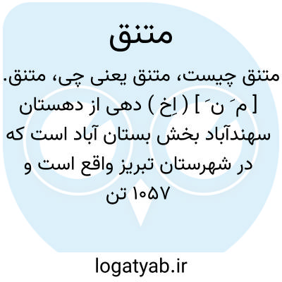 متنق. [ م َ ن َ ] ( اِخ ) دهی از دهستان سهندآباد بخش بستان آباد است که در شهرستان تبریز واقع است و 1057 تن سکنه دارد. ( از فرهنگ جغرافیایی ایران ج 4 ).