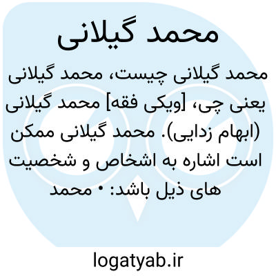 [ویکی فقه] محمد گیلانی (ابهام زدایی). محمد گیلانی ممکن است اشاره به اشخاص و شخصیت های ذیل باشد: • محمد بن مومن گیلانی، مولف الذریعة الی حافظ الشریعه از بزرگان قرن ۱۱ و از شاگران علامه مجلسی اول• محمد محمدی گیلانی، از علمای معاصر شیعه