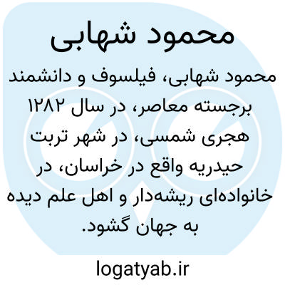 [ویکی فقه] «محمود شهابی»، فیلسوف و دانشمند بزرگ در سال ۱۲۸۲ ش، در تربت حیدریه، از شهرهای خراسان، در خانواده ای اهل علم متولد شد.