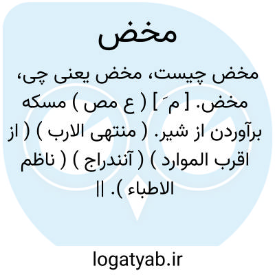 مخض. [ م َ ] ( ع مص ) مسکه برآوردن از شیر. ( منتهی الارب ) ( از اقرب الموارد ) ( آنندراج ) ( ناظم الاطباء ). || دوغ زدن. ( منتهی الارب ) ( آنندراج ) ( از اقرب الموارد ) ( ناظم الاطباء ). ماست در کویش جنبانیدن. ( تاج المصادر بیهقی ). فازدن کویش. ( زوزنی ). || جنبانیدن چیزی را. ( منتهی الارب ) ( از اقرب الموارد ) ( آنندراج ) ( زوزنی ). جنبانیدن هر چیزی. ( تاج المصادر بیهقی ). به سختی جنبانیدن چیزی را. ( ناظم الاطباء ). || جنبانیدن دلو در چاه. ( منتهی الارب ) ( ازاقرب الموارد ) ( آنندراج ). جنبانیدن دلو را در چاه. ( ناظم الاطباء ). || به شقشقه بانگ کردن شتر. ( منتهی الارب ) ( از اقرب الموارد ) ( آنندراج ) ( از ناظم الاطباء ). || برگردانیدن کسی رأی خود را و تدبر کردن در عواقب کار تا آنکه بخوبی بر وی ظاهر شود.( ناظم الاطباء ) ( از اقرب الموارد ) ( از محیط المحیط ).