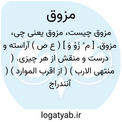 مزوق. [ م ُ زَوْ وَ ] ( ع ص ) آراسته و درست و منقش از هر چیزی. ( منتهی الارب ) ( از اقرب الموارد ) ( آنندراج ). هر چیز آراسته و زینت کرده شده و منقش. ( ناظم الاطباء ). آراسته و منقش. ( دهار ). بنگار. مزین. بنگاشته. ( یادداشت به خط مرحوم دهخدا ).