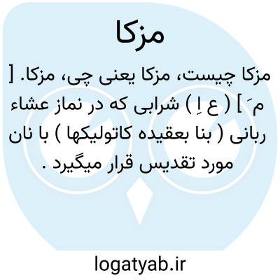 مزکا. [ م َ ] ( ع اِ ) شرابی که در نماز عشاء ربانی ( بنا بعقیده کاتولیکها ) با نان مورد تقدیس قرار میگیرد. ( دزی ج 2 ص 587 ).