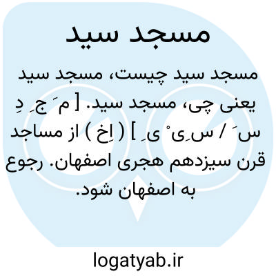 مسجد سید. [ م َ ج ِ دِ س َ / س ِی ْ ی ِ ] ( اِخ ) از مساجد قرن سیزدهم هجری اصفهان. رجوع به اصفهان شود.
