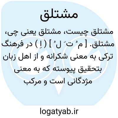 مشتلق. [ م ُ ت َ ل ُ ] ( اِ ) در فرهنگ ترکی به معنی شکرانه و از اهل زبان بتحقیق پیوسته که به معنی مژدگانی است و مرکب از مشت مغیر مژده و لق به ضم به معنی بها. ( آنندراج ). ترکی شده مژدگانی و اصل آن ظاهراً مژده لیک یا مژده لیق بود و به کثرت استعمال مشتلق کرده اند. ( از یادداشت به خط مرحوم دهخدا ). مژدگانی. چیزی که در هنگام رسانیدن خبر خوش یا یافتن چیزی گم کرده کسی به صاحب خبر و یابنده ٔآن می دهند. ( فرهنگ عامیانه جمال زاده ):