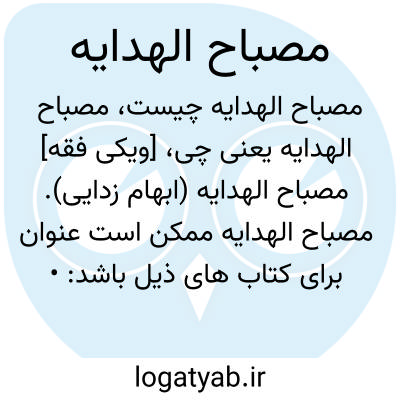 [ویکی فقه] مصباح الهدایه (ابهام زدایی). مصباح الهدایه ممکن است عنوان برای کتاب های ذیل باشد: • مصباح الهدایة الی الخلافة و الولایة، تألیف عارف نامدار، رهبر کبیر انقلاب اسلامی ایران حضرت امام خمینی (ره)• مصباح الهدایة فی اثبات الولایة، تألیف سیدعلی موسوی بهبهانی درباره ۴۰ آیه و حدیث درباره شایستگی ائمه طاهرین (علیهم السلام) برای زمامداری جامعه اسلامی• مصباح الهدایة و مفتاح الکفایة، اثر عزالدین، محمود بن علی کاشانی، در موضوع تصوف و اخلاق
