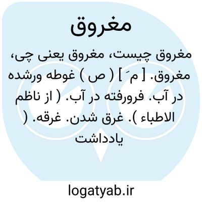 مغروق. [ م َ ] ( ص ) غوطه ورشده در آب. فرورفته در آب. ( از ناظم الاطباء ). غرق شدن. غرقه. ( یادداشت به خط مرحوم دهخدا ). این کلمه ظاهراً برساخته فارسیان است و در عربی غریق باید گفت.