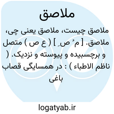 ملاصق. [ م ُ ص ِ ] ( ع ص ) متصل و برچسبیده و پیوسته و نزدیک. ( ناظم الاطباء ): در همسایگی قصاب باغی بود ملاصق به سرای او. ( مرزبان نامه چ قزوینی ص 134 ). جایهای ظاهر شدن آب به رودخانه متصل و ملاصق است. ( تاریخ قم ص 43 ). || یار و همدم. ( ناظم الاطباء ).