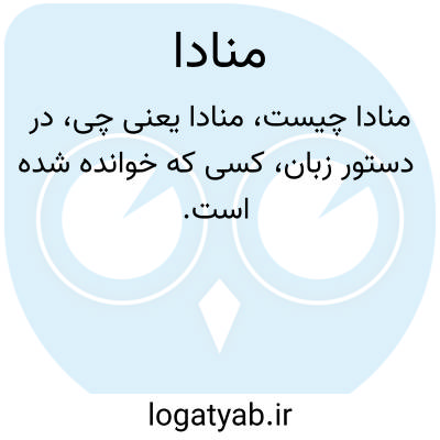 به اسمی که مورد ندا قرار میگیرد منادا میگویند؛ مثلاً در مثالهای بالا، کلمات «خدا، مردم، علی، حافظ، دوستان» منادا هستند.