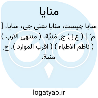 منایا. [ م َ ] ( ع اِ ) ج ِ مَنیَّة. ( منتهی الارب ) ( ناظم الاطباء ) ( اقرب الموارد ). ج ِ منیة، به معنی مرگ و اجل. ( آنندراج ): از برای وی، احمد انواع منایا و احسن اقسام رزایا مقدر ساخت. ( ترجمه تاریخ یمینی چ 1 تهران ص 459 ). رجوع به منیة شود.