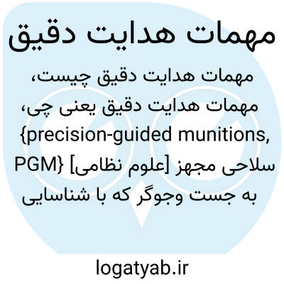{precision-guided munitions, PGM} [علوم نظامی] سلاحی مجهز به جست وجوگر که با شناسایی انرژی الکترومغناطیسی بازتابی از هدف یا نقطۀ مرجع و پردازش آن فرمان های هدایت را برای سامانۀ واپایش ارسال می کند و به این ترتیب، سلاح به سمت هدف هدایت می شود
