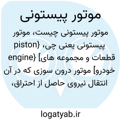 {piston engine} [قطعات و مجموعه های خودرو] موتور درون سوزی که در آن انتقال نیروی حاصل از احتراق، ازطریق پیستون انجام می شود