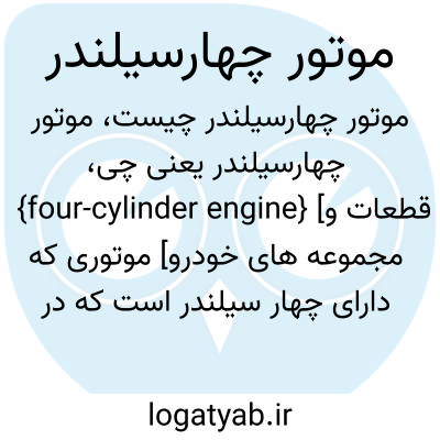 {four-cylinder engine} [قطعات و مجموعه های خودرو] موتوری که دارای چهار سیلندر است که در یک خط، گاه به شکل خورجینی و گاه در یک صفحه، در مقابل یکدیگر چیده شده اند