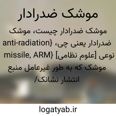 {anti-radiation missile, ARM} [علوم نظامی] نوعی موشک که به طور غیرعامل منبع انتشار نشانک/ سیگنال های راداری را دنبال می کند