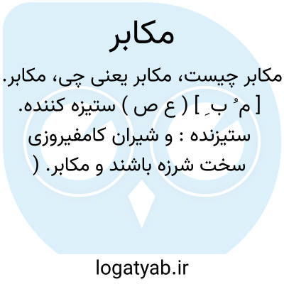 مکابر. [ م ُ ب ِ ] ( ع ص ) ستیزه کننده. ستیزنده: و شیران کامفیروزی سخت شرزه باشند و مکابر. ( فارسنامه ابن البلخی ص 155 ). تا یک زمان مکابر درآمد و کمربند بهمن بگرفت و از پشت اسب برداشت. ( سمک عیار چ خانلری ج 1 ص 73 ). و رجوع به سه ماده بعد شود.