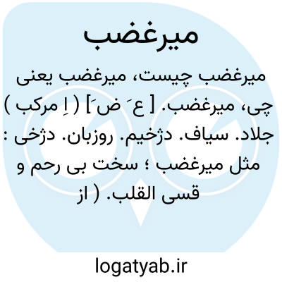 میرغضب. [ ع َ ض َ] ( اِ مرکب ) جلاد. سیاف. دژخیم. روزبان. دژخی: مثل میرغضب؛ سخت بی رحم و قسی القلب. ( از یادداشت مؤلف ).