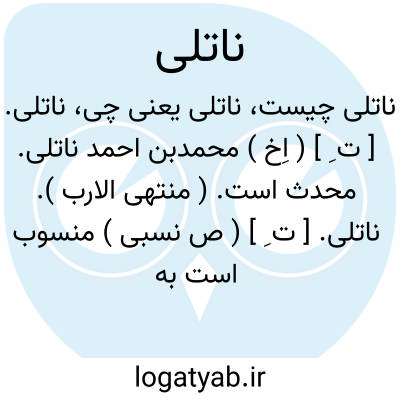 ناتلی. [ ت ِ ] ( ص نسبی ) منسوب است به ناتل از بلاد نواحی آمل طبرستان. ( الانساب سمعانی ).