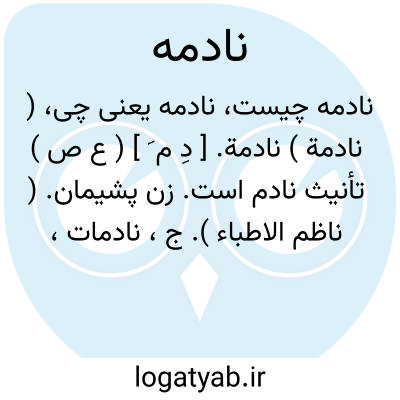 ( نادمة ) نادمة. [ دِ م َ ] ( ع ص ) تأنیث نادم است. زن پشیمان. ( ناظم الاطباء ). ج، نادمات، نوادم. رجوع به نادم شود.