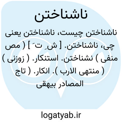 ناشناختن. [ ش ِ ت َ ] ( مص منفی ) نشناختن. استنکار. ( زوزنی ) ( منتهی الارب ). انکار. ( تاج المصادر بیهقی ) ( منتهی الارب ) ( ترجمان القرآن ). نکر. ( دهار ) ( تاج المصادر بیهقی ). تناکر.( منتهی الارب ). مقابل شناختن. رجوع به شناختن شود.