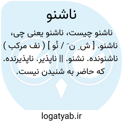 ناشنو. [ ش ِ ن َ / نُو ] ( نف مرکب ) ناشنونده. نشنو. || ناپذیر. ناپذیرنده. که حاضر به شنیدن نیست. || بصورت پساوند بدنبال اسم آید و صفت مرکب سازد: سخن ناشنو. پندناشنو. حرف ناشنو. و رجوع به نشنو شود.