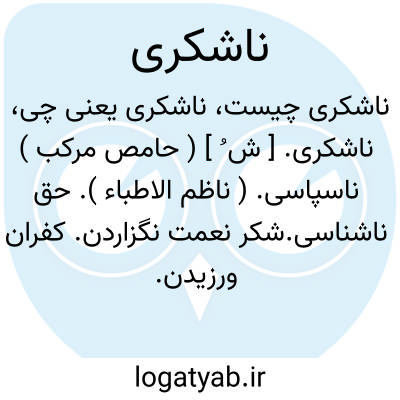 ناشکری. [ ش ُ ] ( حامص مرکب ) ناسپاسی. ( ناظم الاطباء ). حق ناشناسی.شکر نعمت نگزاردن. کفران ورزیدن. کافرنعمتی کردن.