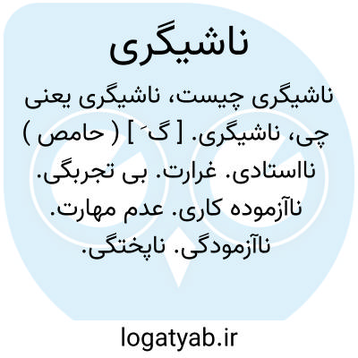 ناشیگری. [ گ َ ] ( حامص ) نااستادی. غرارت. بی تجربگی. ناآزموده کاری. عدم مهارت. ناآزمودگی. ناپختگی. رجوع به ناشی شود.